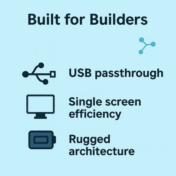 Engineered for innovators, The CreationStation is designed for creators, developers, and engineers who demand flexibility without compromise. Every detail serves productivity — from the tactile physical KVM for instant multi-system switching to the modular chassis that adapts to any environment. With support for any operating system, seamless USB passthrough, and field-ready durability, it’s more than a device — it’s your mobile command center. Wherever ideas are built, The CreationStation is ready to build with you.